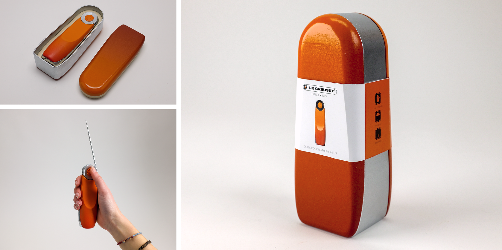 Firefly is a design concept for a digital thermometer with the brand language of Le Crueset.